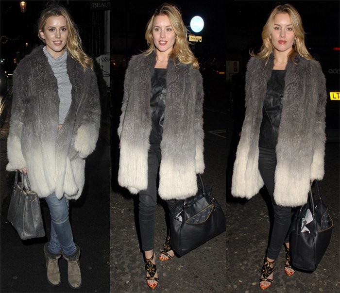 The Made in Chelsea star opted for a gradient fur outerwear. She wore it two ways – first over a shirt, a pair of black jeans and a pair of sandals and second over a turtleneck top, light washed jeans and booties. There’s no shortage of fur coats these days. We picked out some you might want to add to your closet: